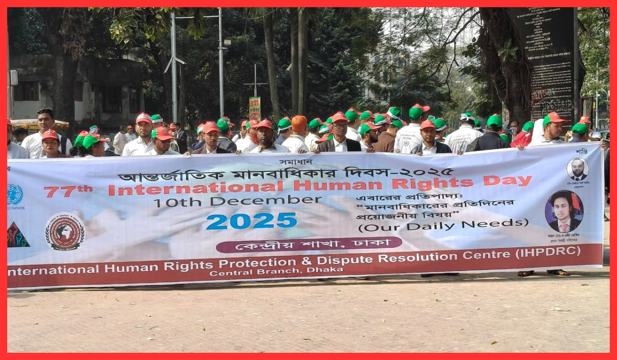 র্যালি আয়োজন করেছিল International Human Rights Protection & Dispute Resolution Centre (IHPDRC), Central Branch, Dhaka। এতে সংগঠনের সদস্যসহ বিভিন্ন শ্রেণি-পেশার মানুষ অংশগ্রহণ করেন। অংশগ্রহণকারীরা সাদা পোশাক ও লাল-সবুজ ক্যাপ পরিধান করে মানবাধিকার রক্ষার আহ্বান জানান। এ বছরের প্রতিপাদ্য ছিল—“মানবাধিকারের প্রতিদিনের প্রয়োজনীয় বিষয় (Our Daily Needs)।”
