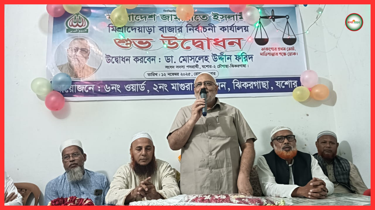 যশোরের ঝিকরগাছা উপজেলার মিশ্রীদেয়াড়া বাজারে ২নং মাগুরা ইউনিয়নের ৬নং ওয়ার্ড জামায়াতের নির্বাচনী কার্যালয় উদ্বোধন করা হয়েছে। বুধবার (১২ নভেম্বর) বিকেল ৫টায় এ কার্যালয়ের উদ্বোধন করেন যশোর-২ আসনের জামায়াত মনোনীত সংসদ সদস্য প্রার্থী ডা. মোসলেহ উদ্দীন ফরিদ।